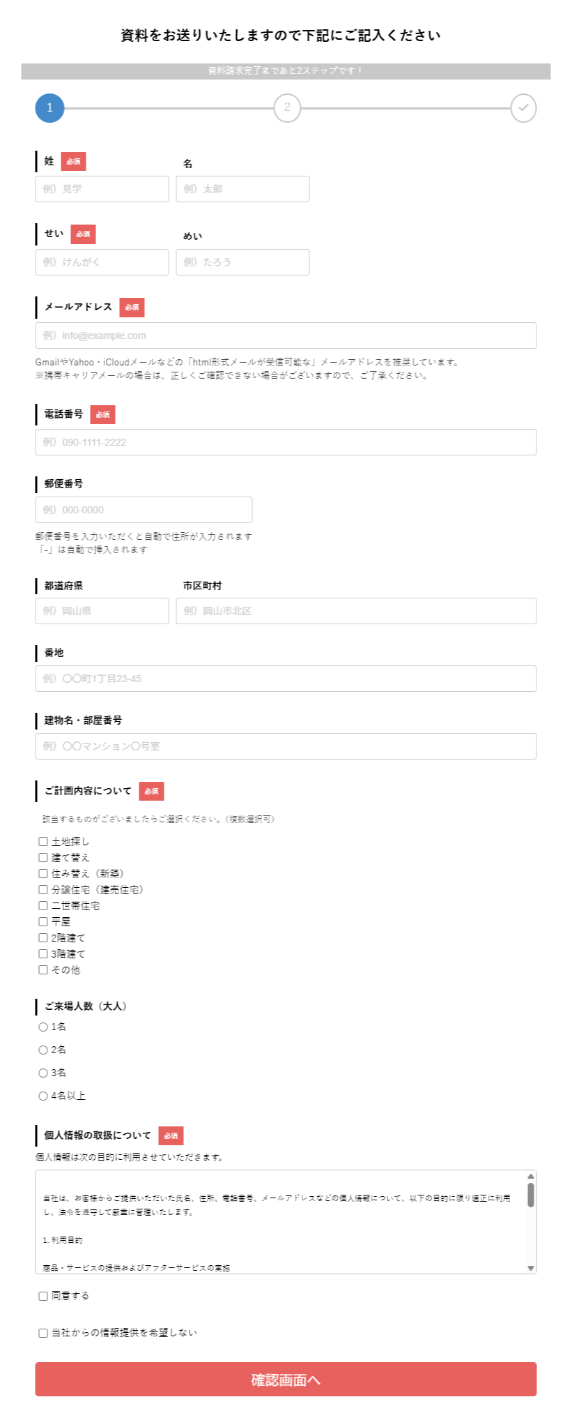 - 資料請求一覧から、お客様情報を完全に削除することはできません。